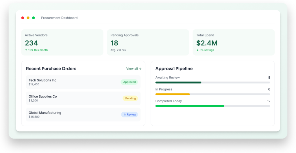 Automate vendor management, purchase approvals, invoice tracking, and procurement workflows from one unified platform built for modern businesses.