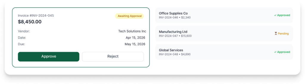 Monitor invoices, approvals, and vendor payments in real time